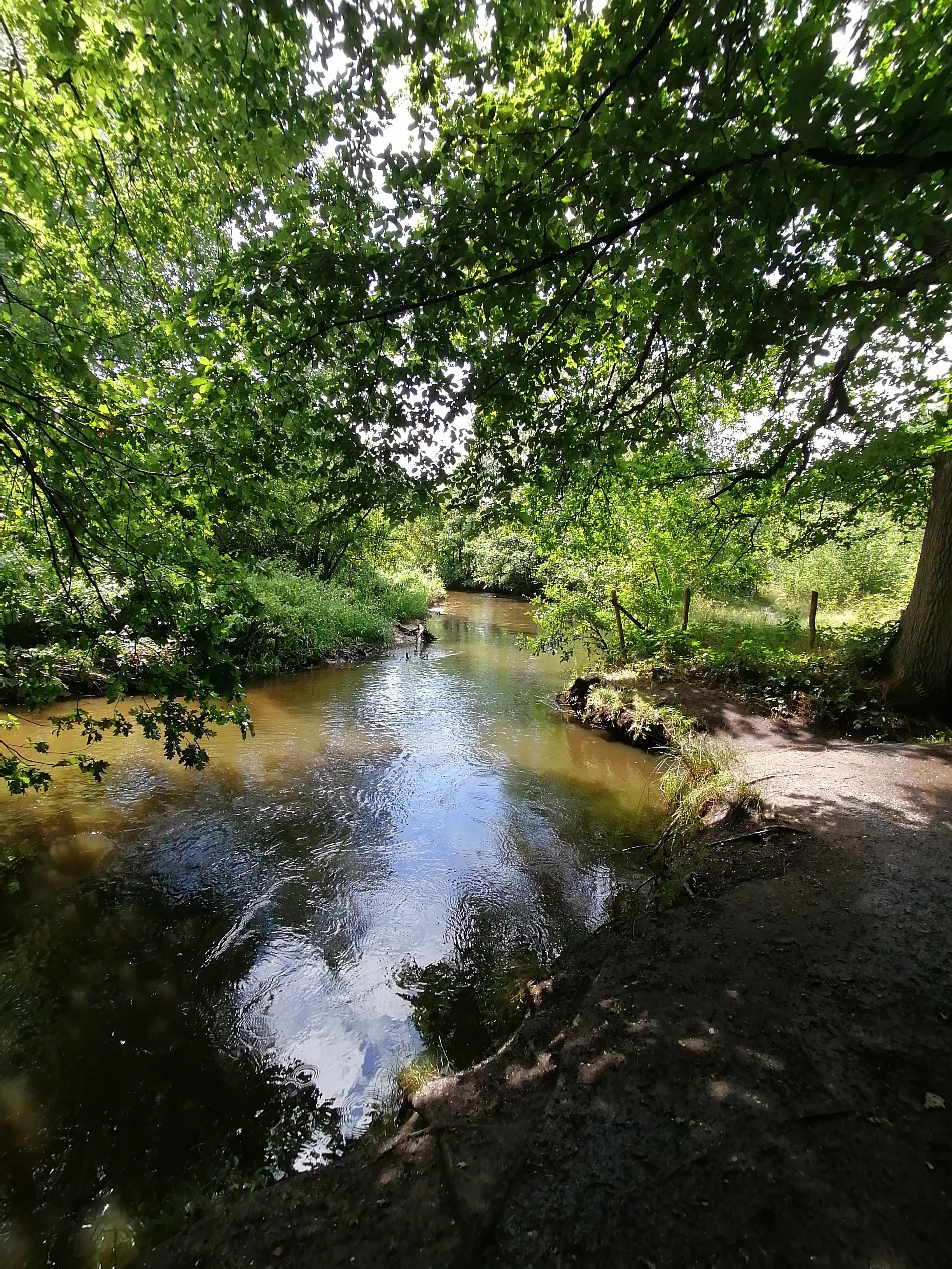 25 juli, op pad, vanaf station Venlo, 23 km voor de boeg………Genieten van het Jaomerdal met zijn prachtige vennen. Vandaaruit naar het Trappistenklooster Ulingsheide en later over smalle paden langs de hoge steilranden nabij Tegelen. Plots op een bord, een verwijzing naar restanten van de kleigroeven van Laumans,  hoe leuk is dat. Prachtige paden door de Duitse bossen. Koffie met vlaai aan de grens in Reuver en dan…. een enorme regenbui trotseren vlak voor Swalmen. Poncho’s aan en later weer uit. De afsluiting van al dit moois is de lieflijk meanderende Swalm door een geheimzinnig bos nabij het Groenewoud in Swalmen. Zelfs de busreis terug naar Venlo wordt een belevenis..