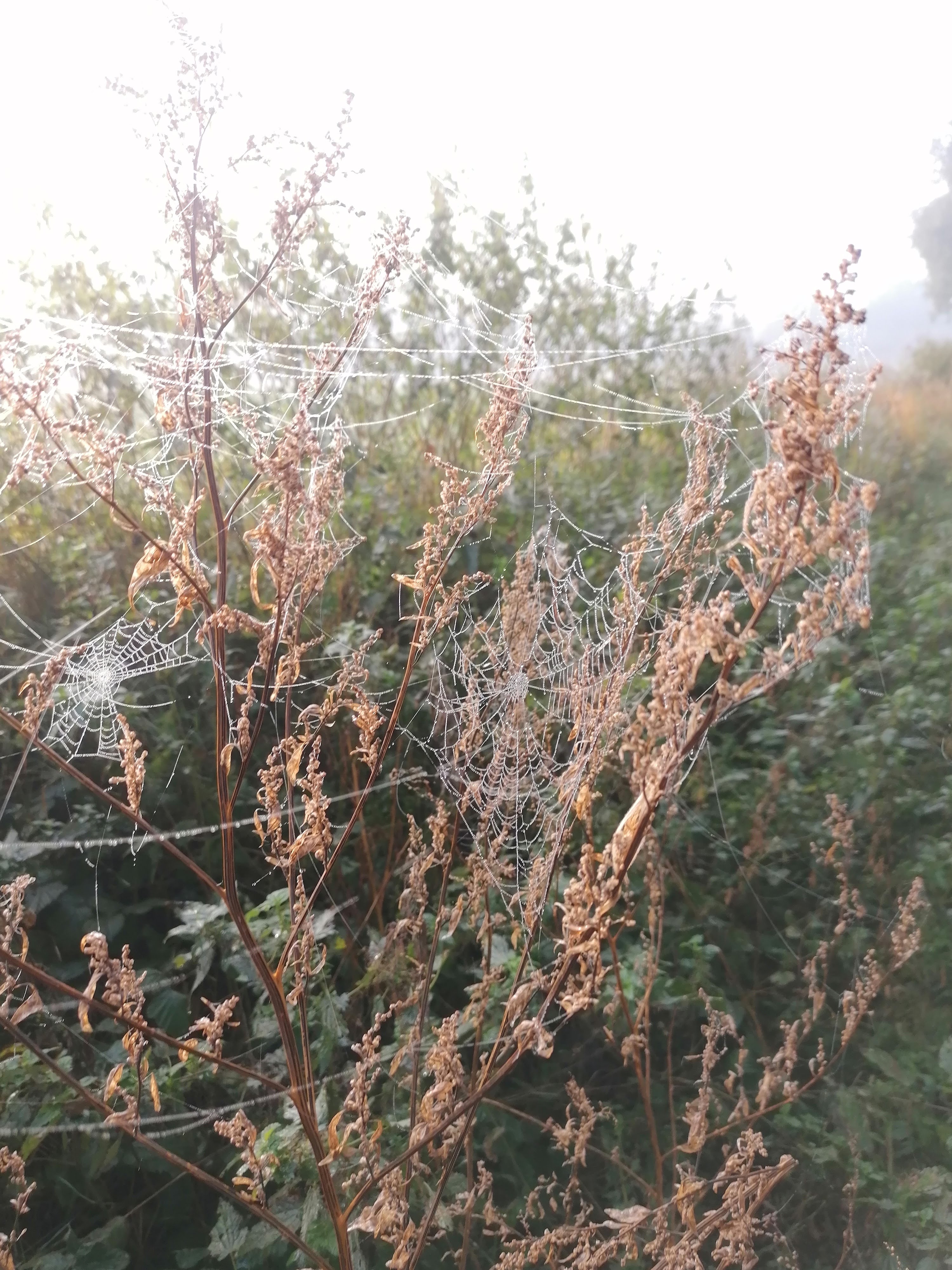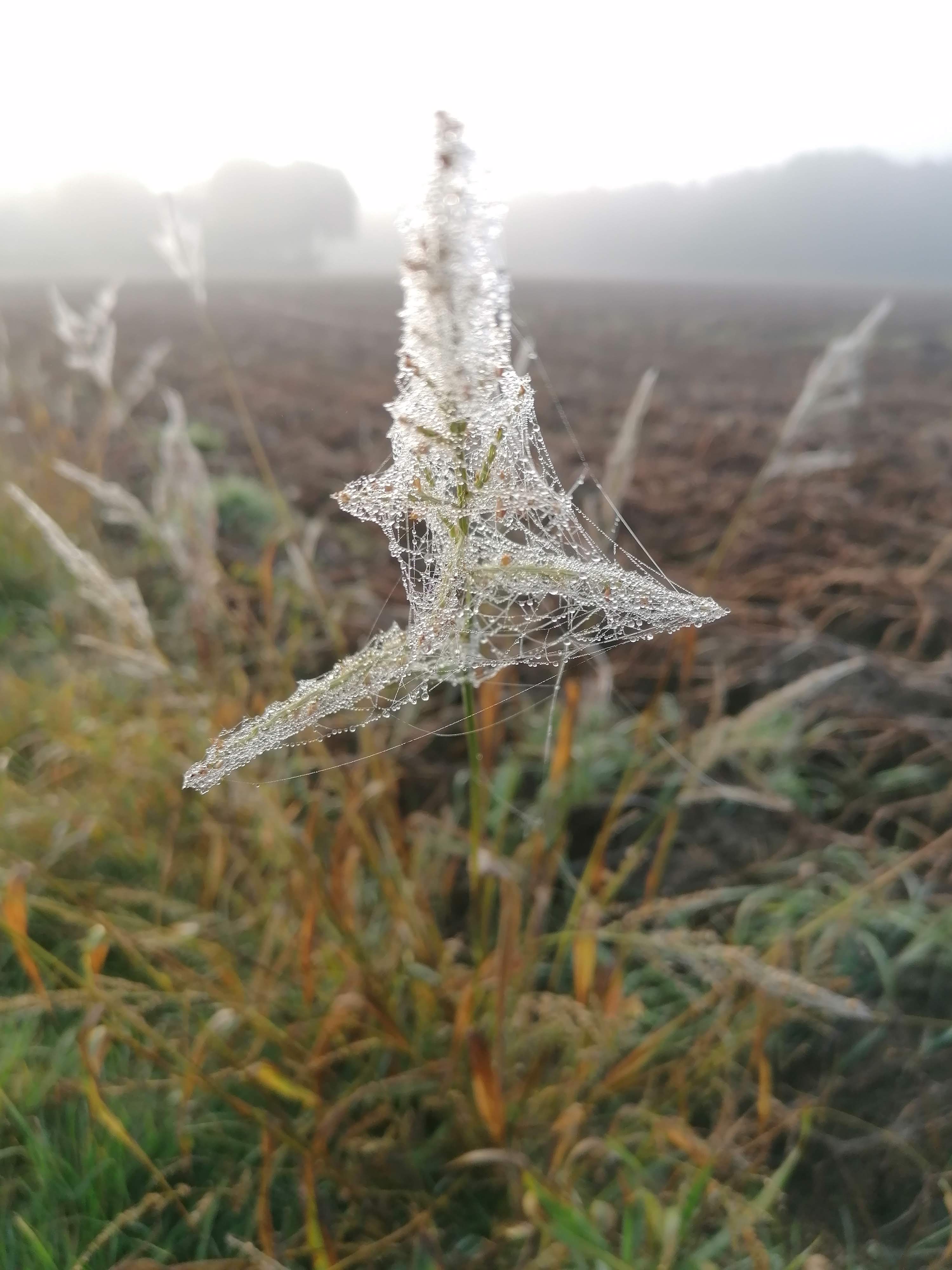 ochtenddauw na een koude nacht, hecht zich aan spinnenwebben.. het wachten is op de zon om deze te laten schitteren…….