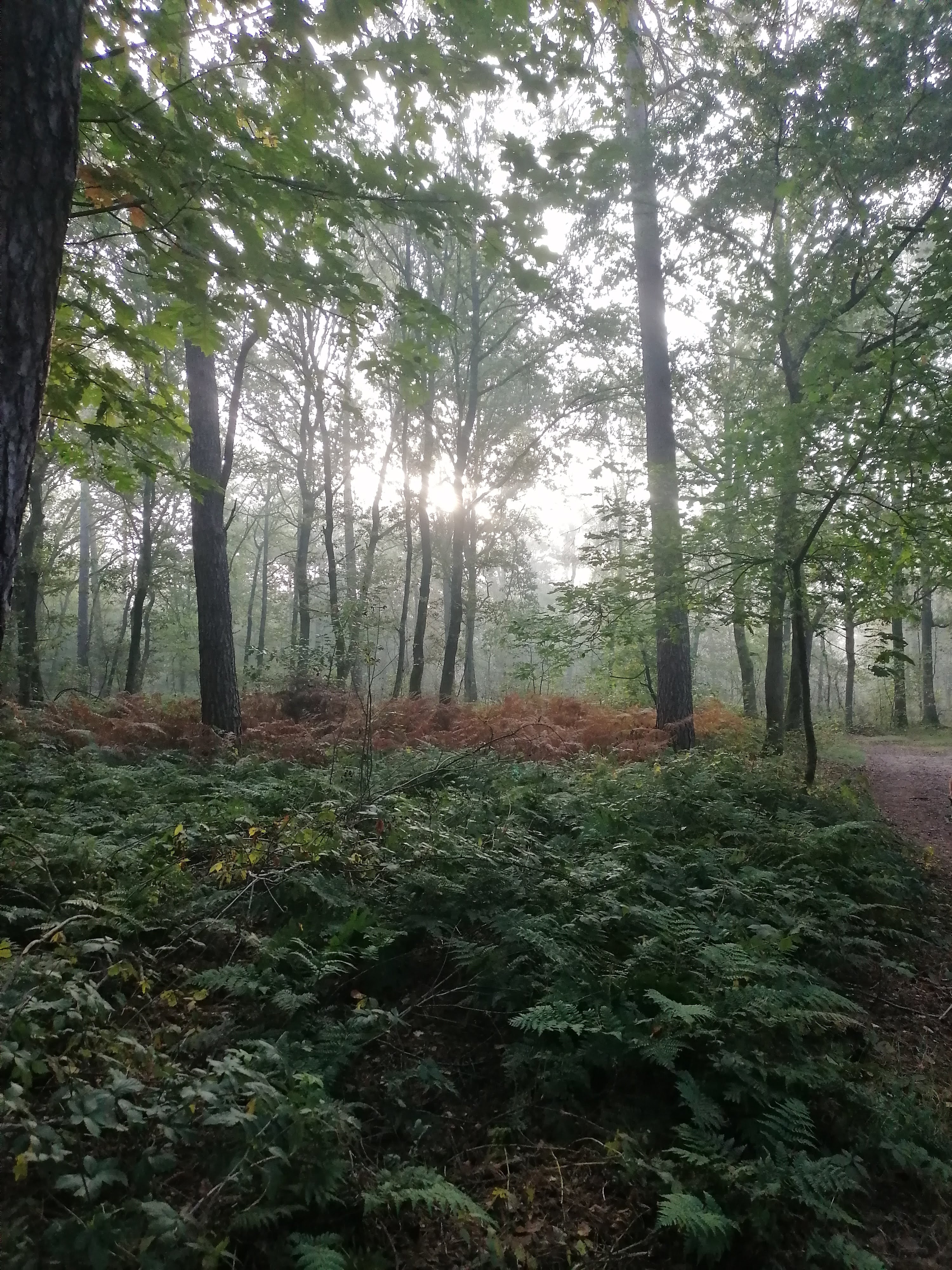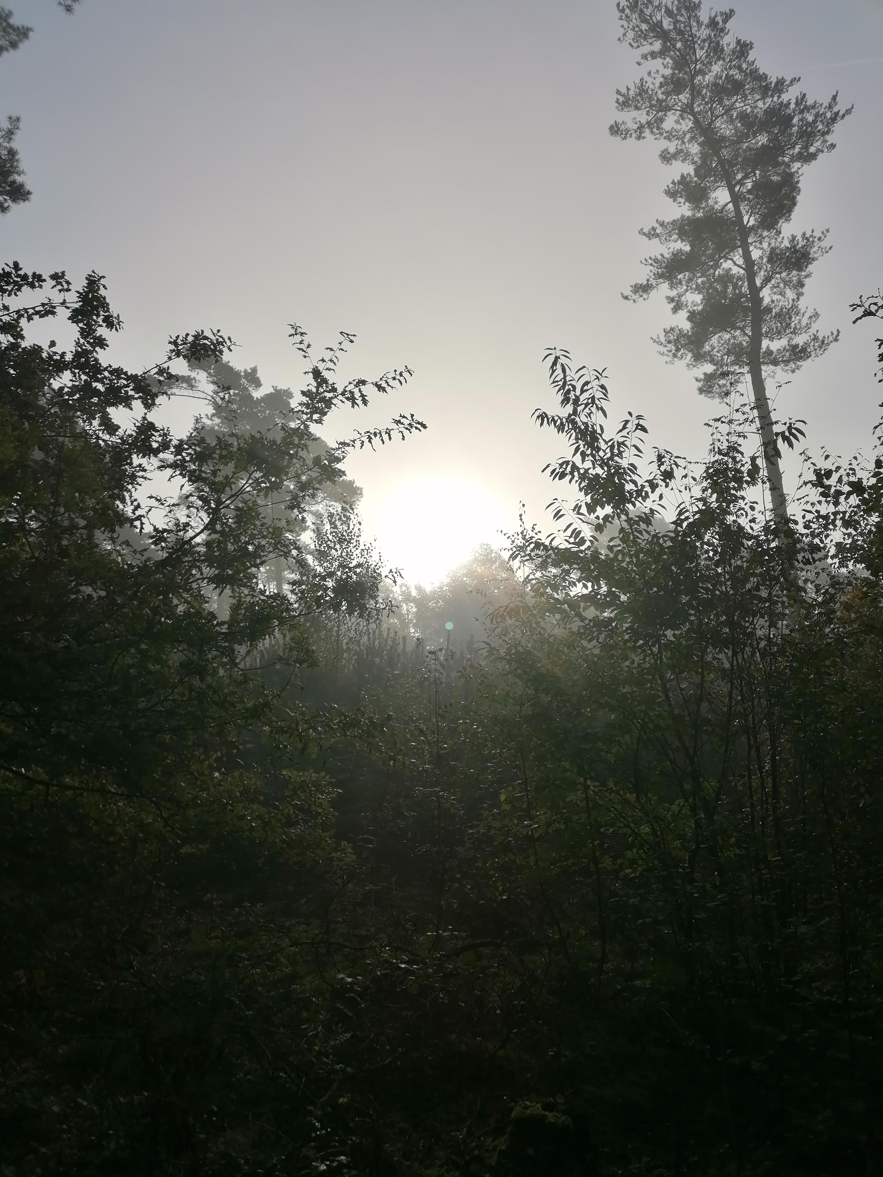 diezelfde zon tovert glijbaantjes uit de hemel, en geeft het bos in de ochtend  een mysterieuze sfeer